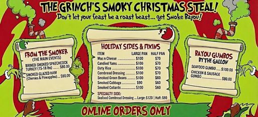 Give your oven a break this year and let Smoke Bayou handle the feast! Pre-order your Christmas favorites - slow-smoked turkey, glazed ham, our famous Gumbo, holiday sides, and all the fixings - ready to heat serve and impress. Order online today and make this Christmas one to remember.